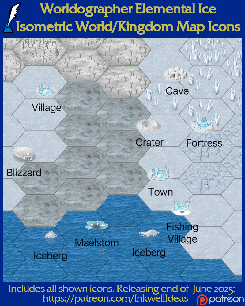 For each monthly theme we usually make 100+ total icons in 4 styles: isometric world/kingdom, classic world/kingdom, settlement, & battlemat based on a theme picked by our patrons. Support us/get them via Patreon! (On the last day of the month we make a pinned post to get the icons via DriveThruRPG at no extra cost.)