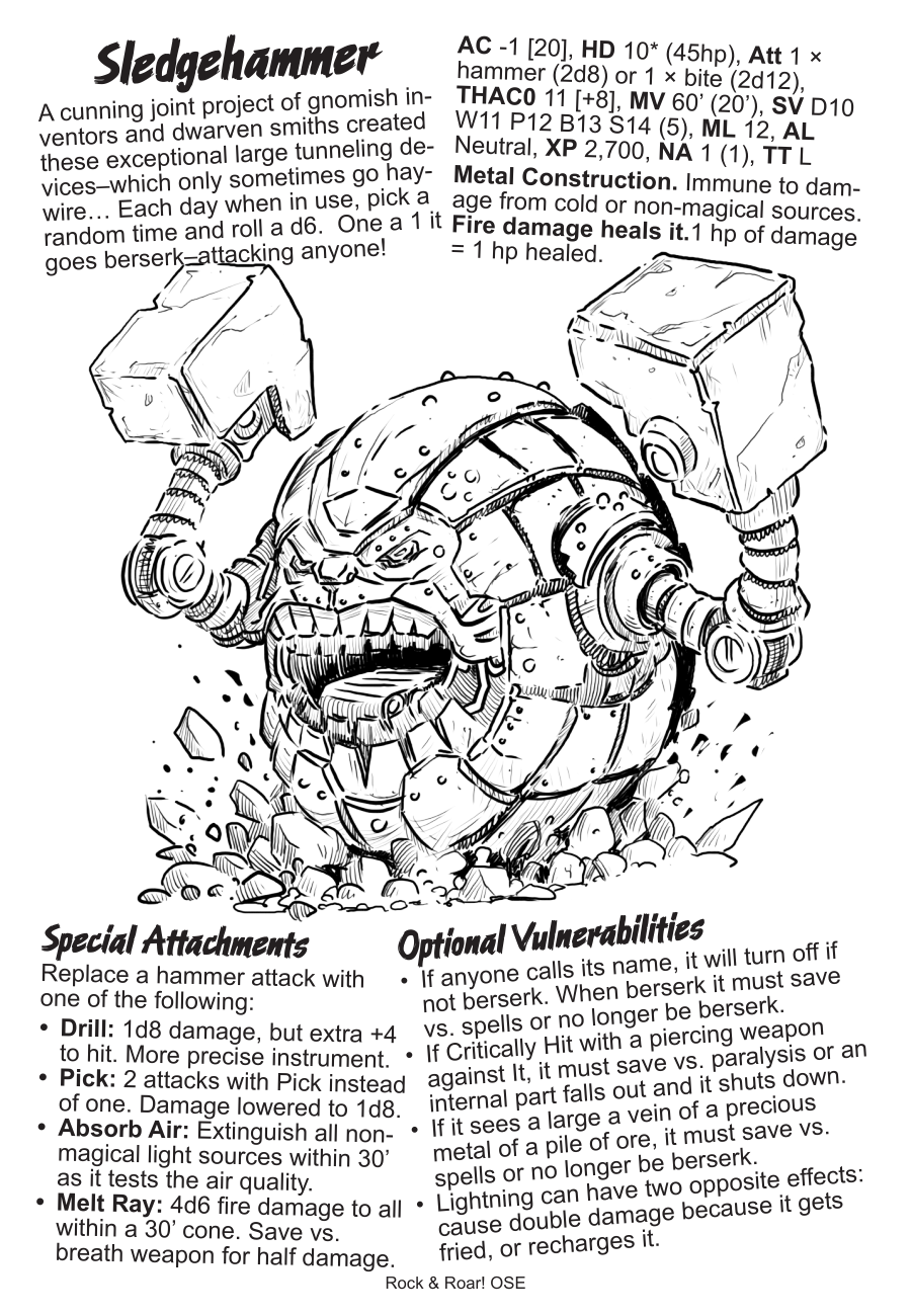 “Rock and Roar”–our next crowdfunding project has just launched! Check it out, get more samples, and watch the super-fun spoof video on the Kickstarter page. The project is an OSR bestiary with creature concepts based on classic rock/pop/metal & more song titles and band names. The project offers two books–one with stats for Shadowdark, and the other has the same monster concepts and art but with stats for Old-School Essentials (OSE, a faithful B/X or early D&D clone).