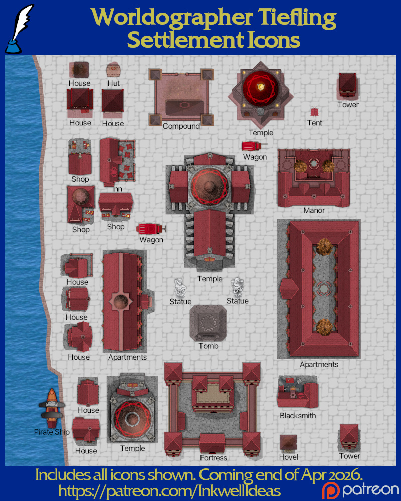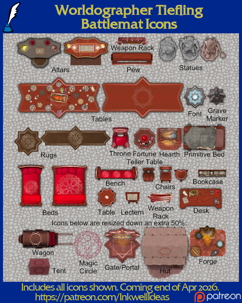 Tiefling Battlemat and Settlement Patreon Map Icons Previews